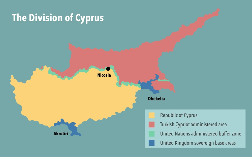 • Politics: Split between the Turkish Republic of Northern Cyprus and the Republic of Cyprus, an EU member